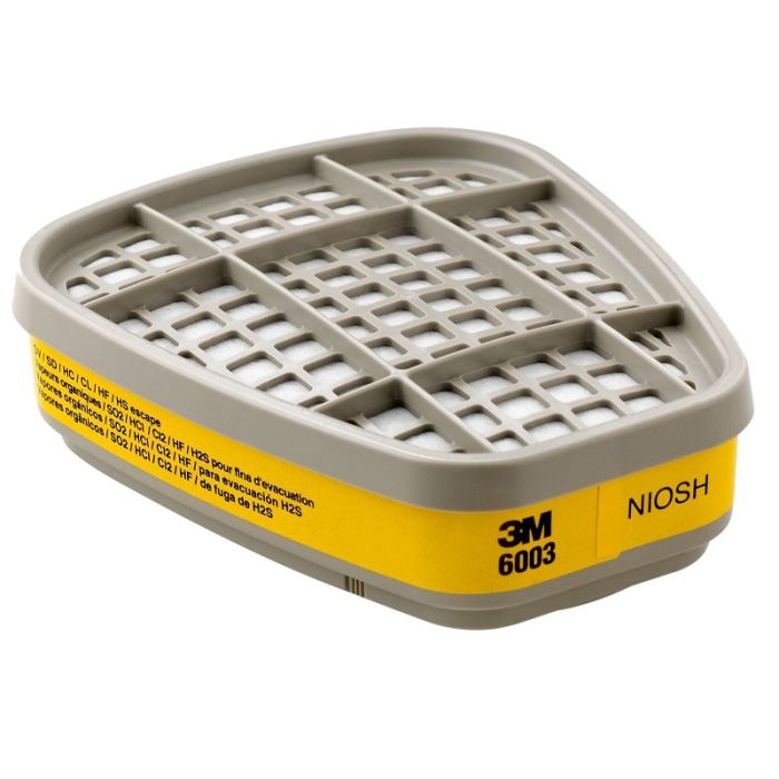 The NIOSH approved 3M Organic Vapor/Acid Gas Cartridge 6003 helps provide respiratory protection against certain organic vapors or acid gases.Swept-back design allows an enhanced field of view and comfort