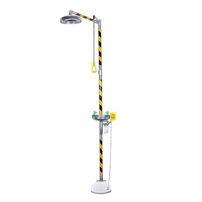 Emergency Safety Shower units are designed to rinse contaminants from the user's eyes and body.