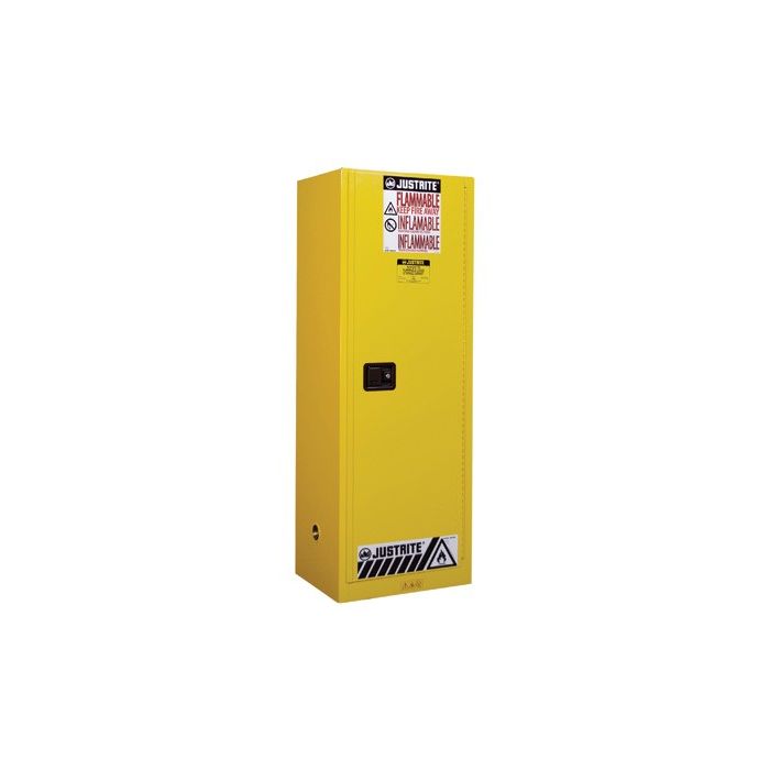 Justrite Sure-Grip EX Slimline Flammable Safety Cabinet 22 Gallon 1 Manual Close Doors Yellow