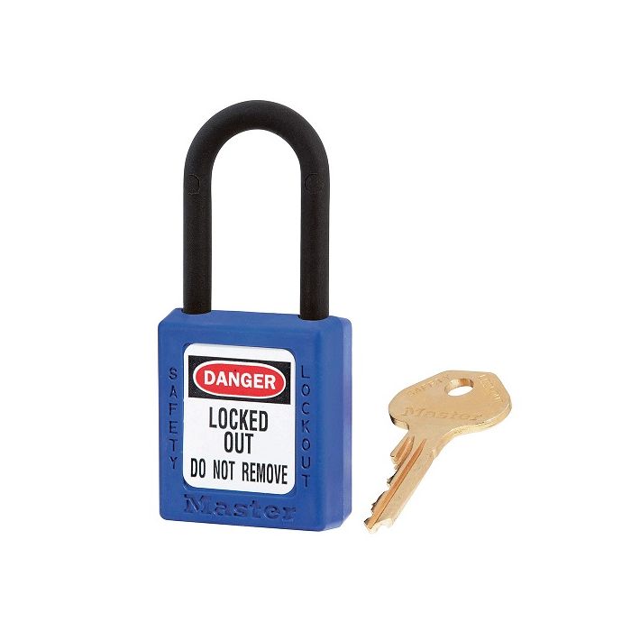 Master Lock 406BLU Blue Dielectric Zenex Thermoplastic Safety Padlock, 1-1/2in (38mm) Wide with 1-1/2in (38mm) Nylon Shackle