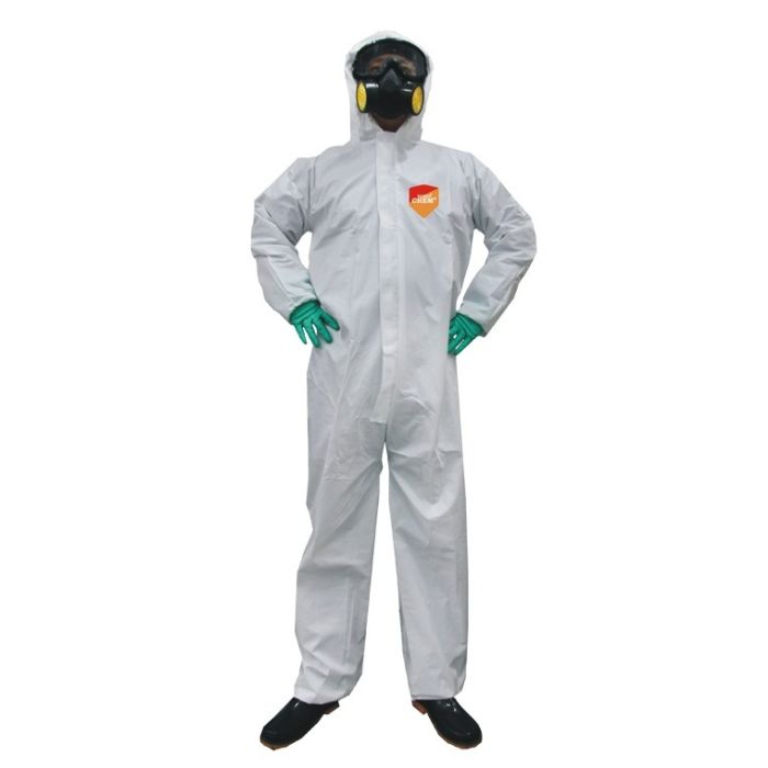 The micro porous film coupled with spun bond polypropylene provides a liquid barrier and offers very low particle generation, allows maximum breathability while offering a high level of protection from varnish, resins, fiberglass, paints and sanding dust.