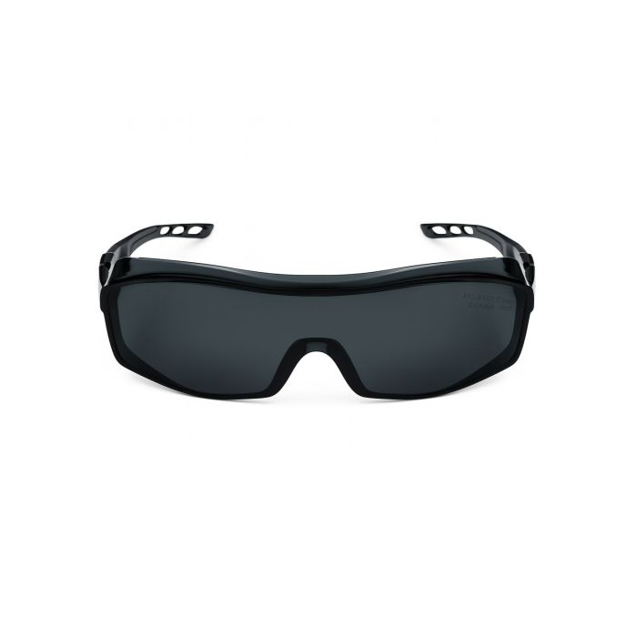 Single lens polycarbonate over glasses. Side shields. Integrated polycarbonate nose piece. Suitable for all types of prescription glasses, Frame and lenses: Polycarbonate
